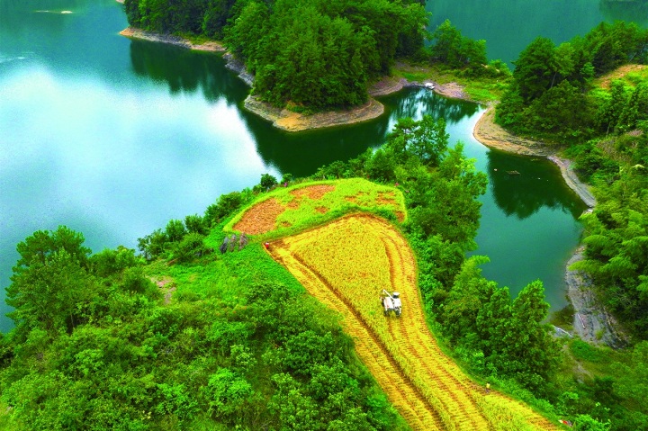 近日,農機手操作收割機在黔江區小南海鎮塘蓮洞村收割水稻。近年來,黔江區充分利用水庫移民后期扶持資金,幫助庫區移民發展蠶桑、柑橘、水稻、中藥材、油菜等生態產業,助力移民增收致富和鄉村振興。金秋時節,水庫庫區的水稻成熟,當地村民忙著搶收、搶曬,確保顆粒歸倉,實現增收。