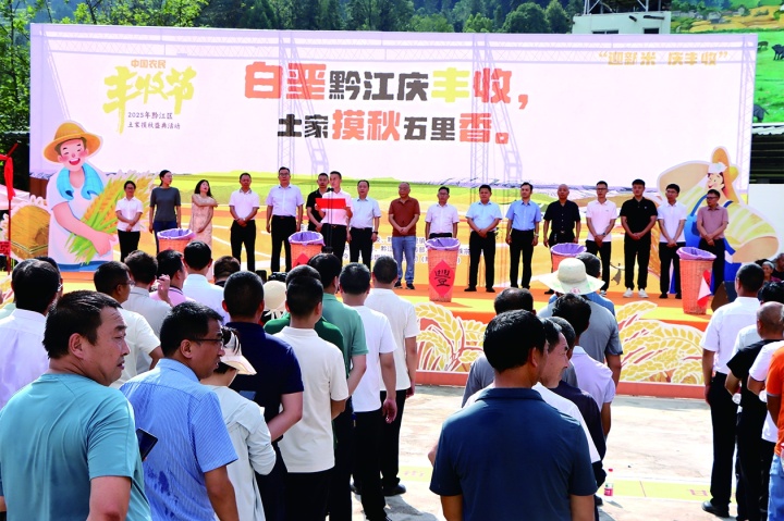 9月17日上午,黔江區五里鎮胡家壩村廣場和優質水稻示范片熱鬧非凡,以“白堊黔江慶豐收·土家摸秋五里香”為主題的2025年中國農民豐收節暨重慶黔江“迎新米慶豐收”土家摸秋盛典在此舉行,千余名嘉賓、游客和村民共同參與,共享豐收喜悅。