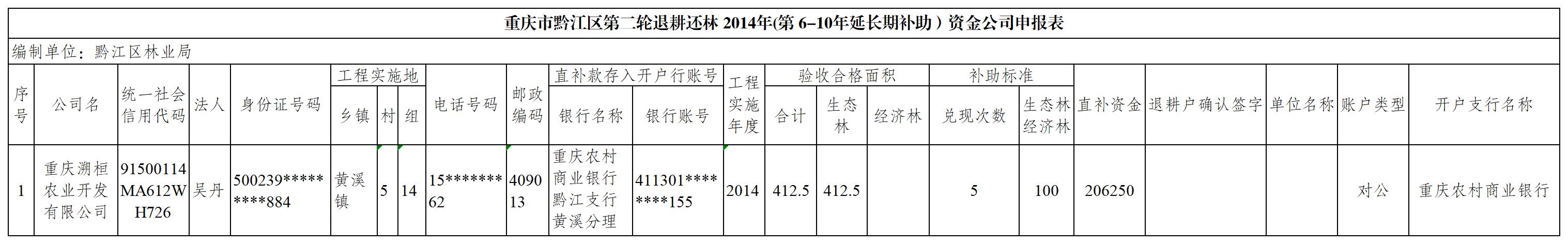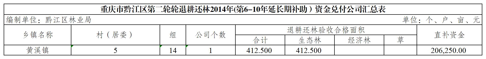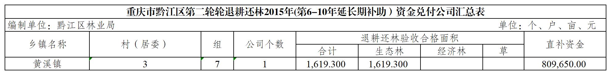 重慶市黔江區(qū)林業(yè)局2025年第二輪退耕還林10月直補(bǔ)資金兌付情況公示(黃溪鎮(zhèn))