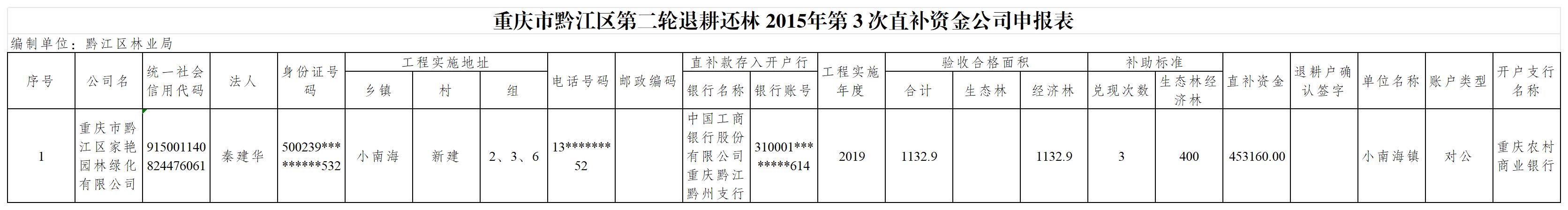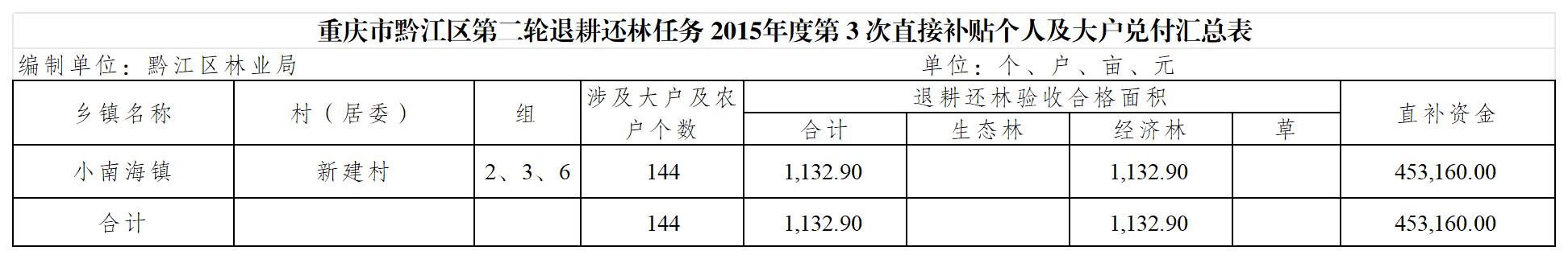 重慶市黔江區(qū)林業(yè)局2025年第二輪退耕還林10月直補(bǔ)資金兌付情況公示(小南海鎮(zhèn)新建村)