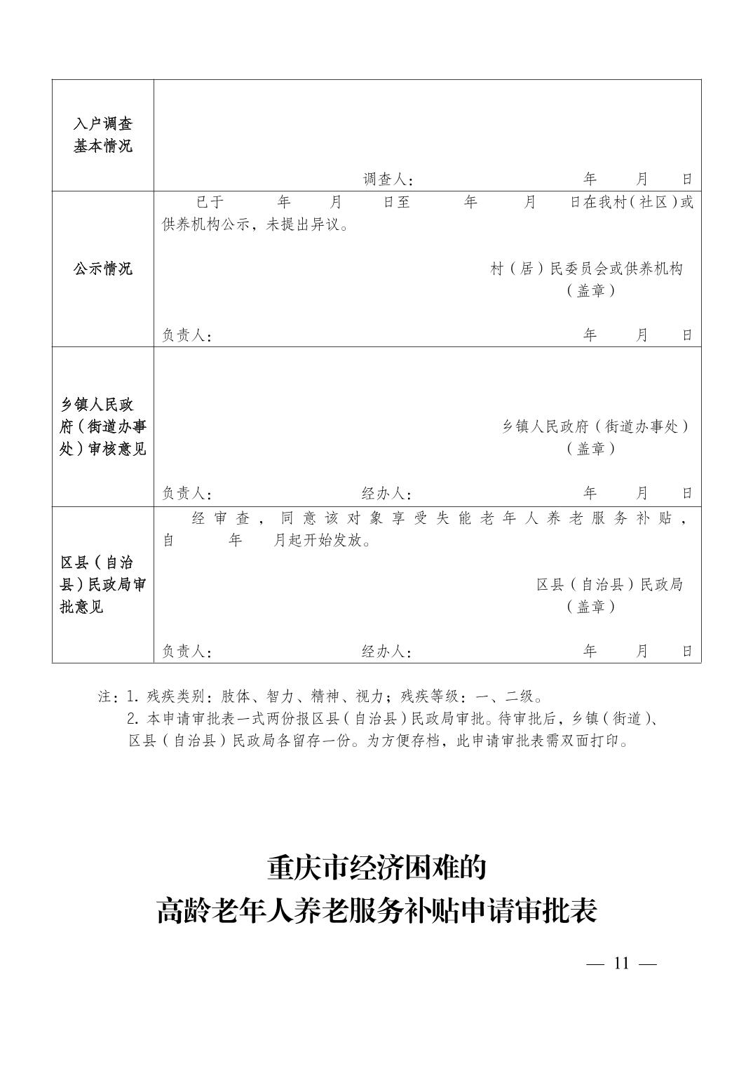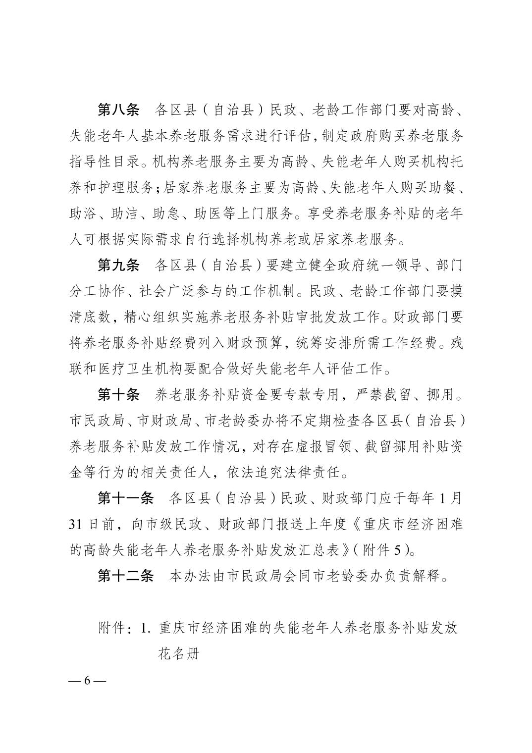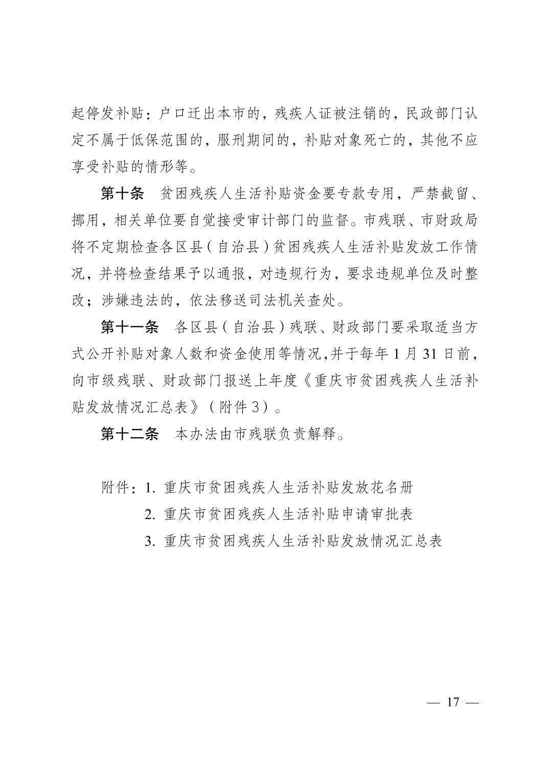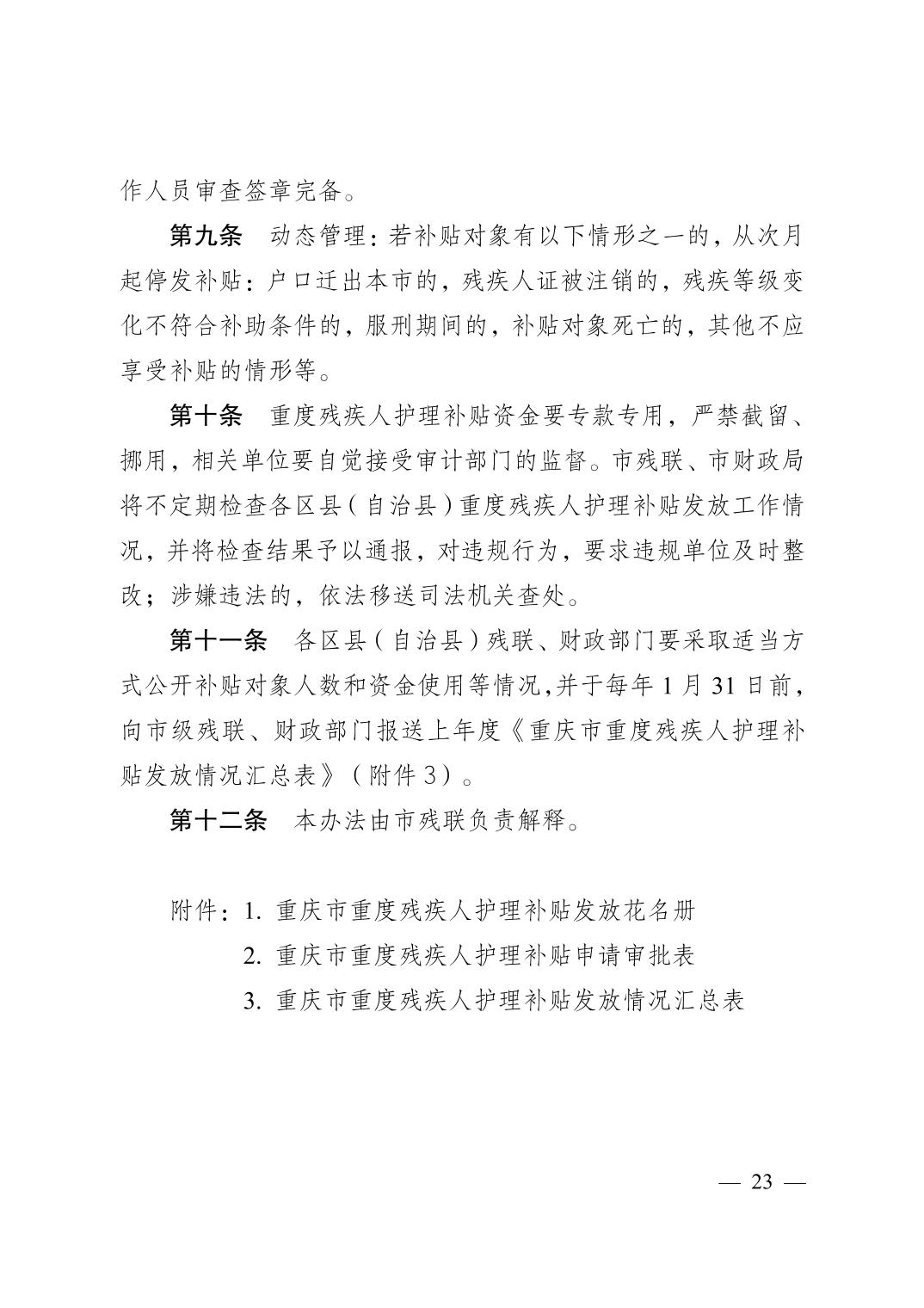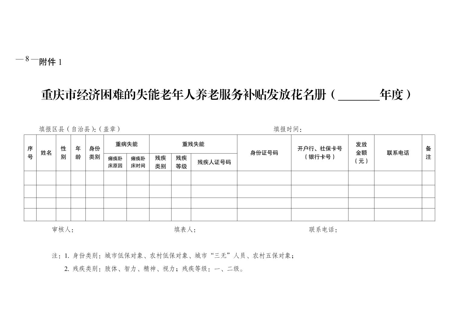 關于印發《重慶市經濟困難的高齡失能老年人養老服務補貼實施辦法》《重慶市貧困殘疾人生活補貼實施辦法》《重慶市重度殘疾人護理補貼實施辦法》的通知(渝民發〔2015〕71號)