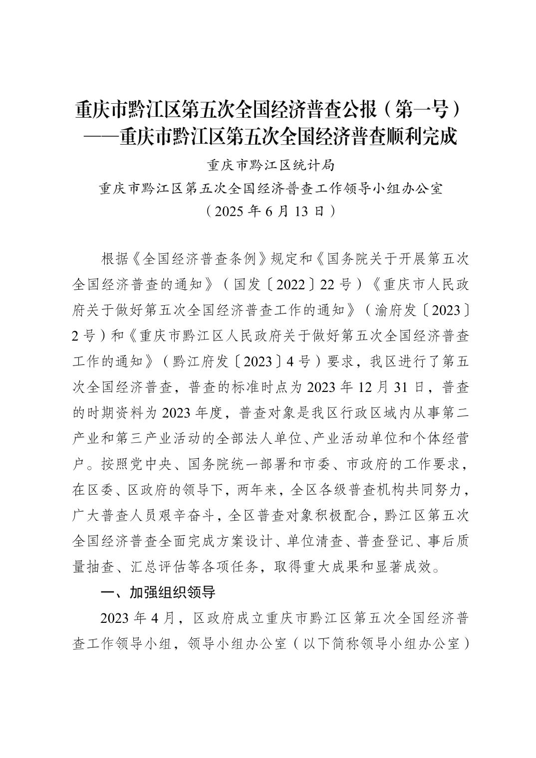 重慶市黔江區第五次全國經濟普查公報(第一號)
