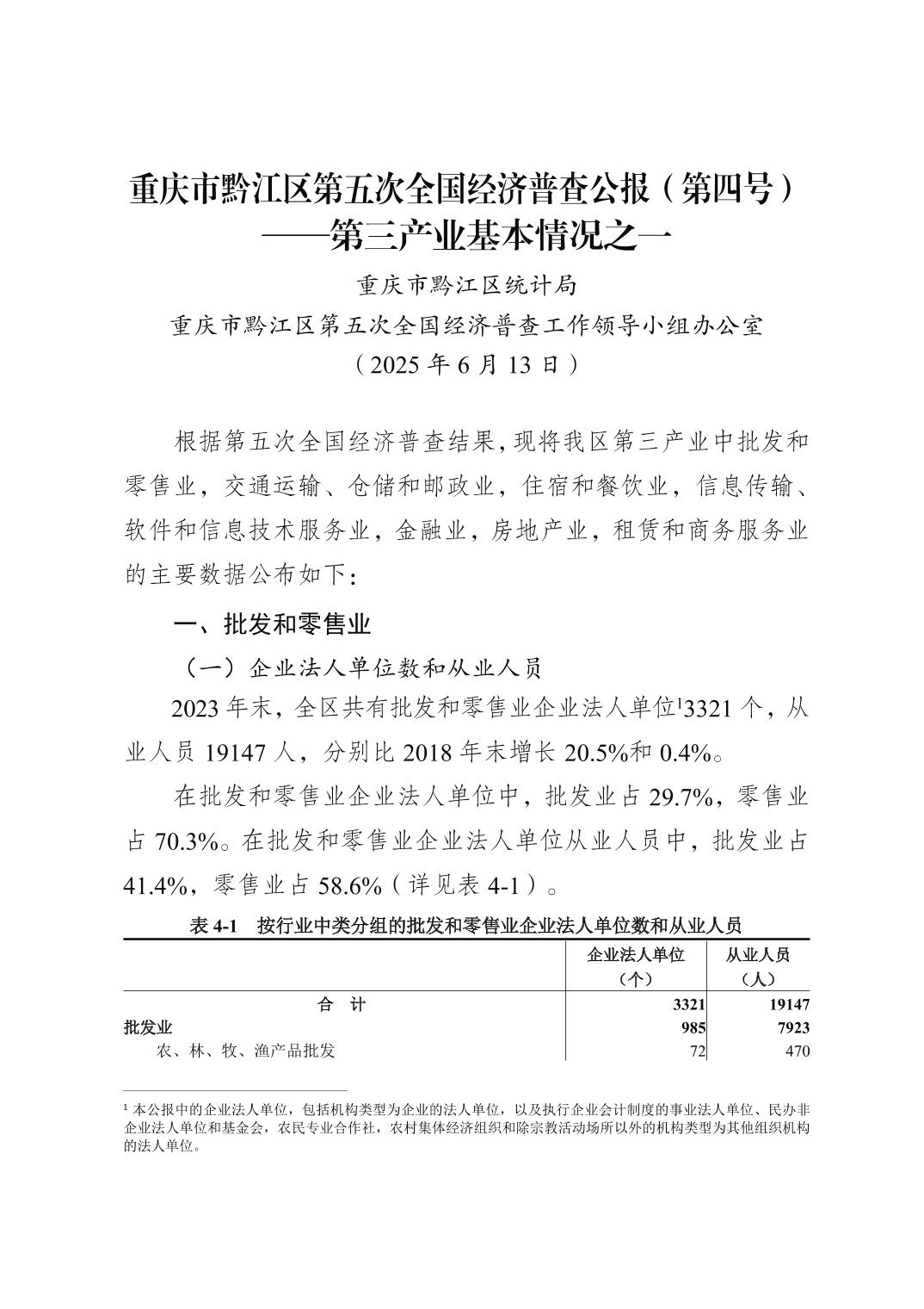 重慶市黔江區第五次全國經濟普查公報(第四號)