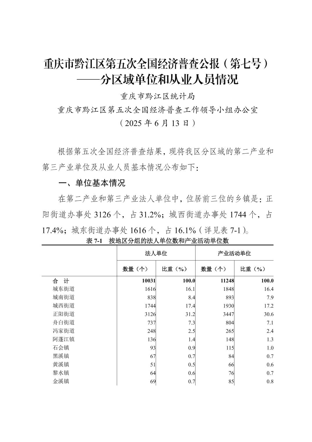 重慶市黔江區第五次全國經濟普查公報(第七號)