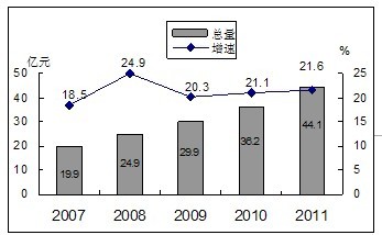 2011年社會消費品零售總額實現44.07億元,比上年增長21.6%。分地區看,城鎮實現消費品零售額31.15億元,增長22.2%;農村實現消費品零售額12. 92億元,增長20.2%。分行業看,批發零售貿易業實現零售額38.04億元, 增長21.9%;住宿餐飲業實現零售額6.03億元,增長20.4%。消費對經濟增長的貢獻率為41%,拉動經濟增長8個百分點。