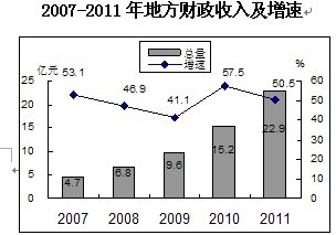 2011年,全區實現財政總收入37.76億元,比上年增長37.4%。實現地方財政收入22.85億元,增長50.5%,實現稅收收入8.83億元,其中增值稅和營業稅分別增長24.5%和49%。全年地方財政支出47.39億元,比上年增長34.5%,其中農林水事務支出增長13.4%,教育支出增長27.1%,醫療衛生支出增長44.8%,社會保障和就業支出增長21.6%,城鄉社區事務支出增長9.8%。