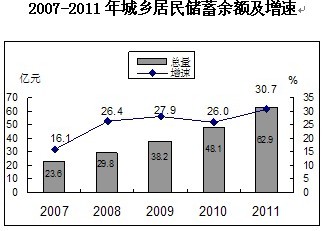 年末金融機構存款余額119.97億元,比上年增長27.7%,其中城鄉居民儲蓄存款余額62.85億元,增長30.7%。金融機構貸款余額74.82億元,增長14.7%,其中短期貸款18.3億元,增長34%, 中長期貸款56.52億元,增長10.7%。