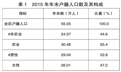 年末戶籍總人口55.05萬人。其中,農業人口30.48萬人,非農業人口24.57萬人。