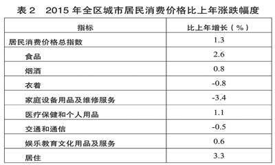 價格水平漲幅較低。全年城市居民消費價格比上年上漲1.3%。其中:食品價格上漲2.6%。