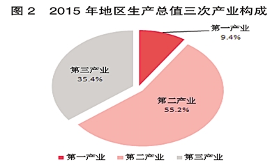分產業看:第一產業增加值19.03億元,增長4.9%;第二產業增加值111.77億元,增長9.6%;第三產業增加值71.75億元,增長11.5%。三次產業結構比為9.4∶55.2∶35.4。按常住人口計算,全區人均地區生產總值44099元,比上年增長8.9%。