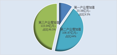 初步核算,全年地區生產總值247.29億元,比上年增長7.4%。分產業看,第一產業增加值23.38億元,增長5.1%;第二產業增加值108.87億元,增長8.1%;第三產業增加值115.04億元,增長7.3%。三次產業結構比為:9.5:44:46.5。民營經濟實現增加值110.47億元,增長3.0%,占全區經濟的44.7%。按常住人口計算,全區人均地區生產總值達到51439元,比上年增長5.4%。