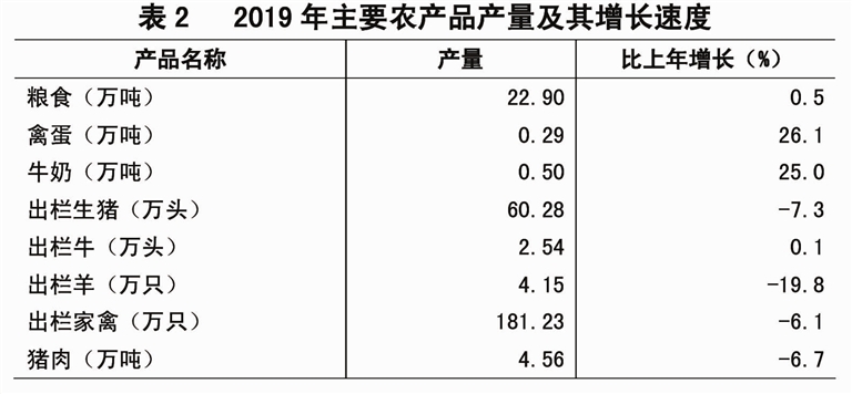 全年糧食產量22.90萬噸,比上年增長0.5%。其中,夏糧產量4.82萬噸,減產0.4%;秋糧產量18.08萬噸,增長0.7%。全年谷物產量13.06萬噸,增長1.0%。其中,稻谷產量6.11萬噸,增長5.3%;玉米產量6.83萬噸,減產2.4%。全年豬肉產量4.56萬噸,下降6.7%。生豬出欄60.28萬頭,下降7.3%。年末生豬存欄41.18萬頭,下降4.2%。