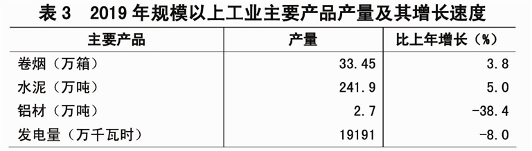 全年工業增加值60.93億元,比上年下降0.1%,占地區生產總值的26.6%。全年規模以上工業總產值中,卷煙及配套產業增長19.3%。