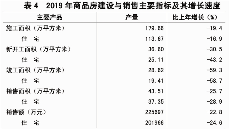 全年房地產開發投資11.93億元,比上年下降36.8%。其中,住宅投資9.30億元,下降39.1%;商業營業用房投資1.23億元,下降36.2%。