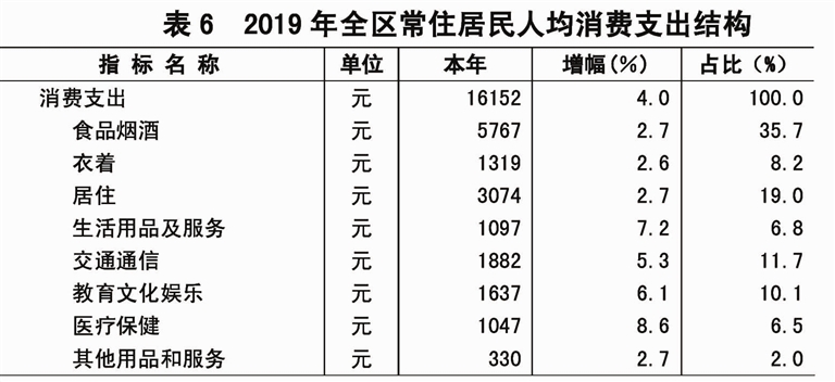 全區常住居民人均可支配收入24298元,比上年增加2363元,增長10.8%。全區常住居民人均消費支出16152元,比上年增加619元,增長4.0%。