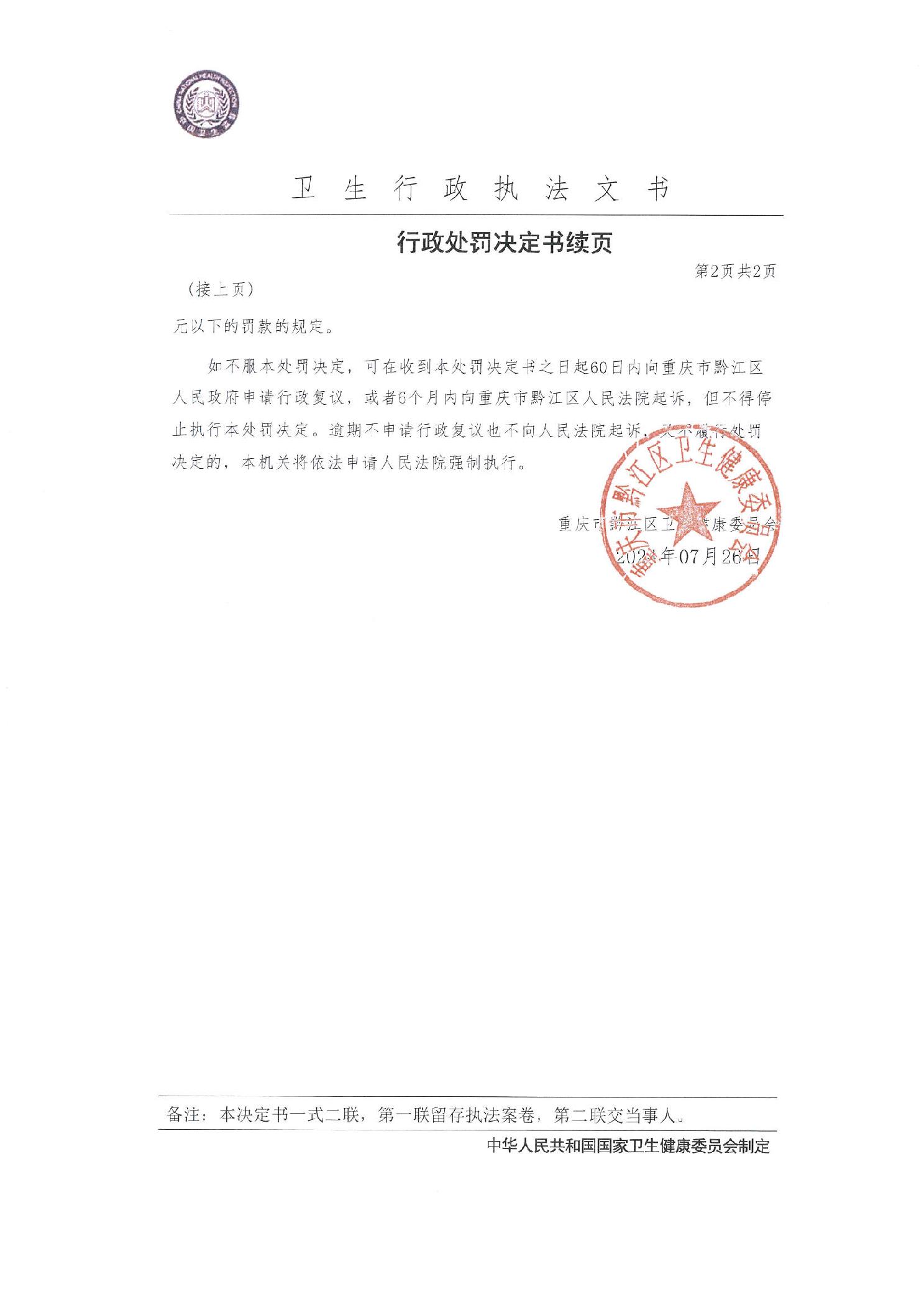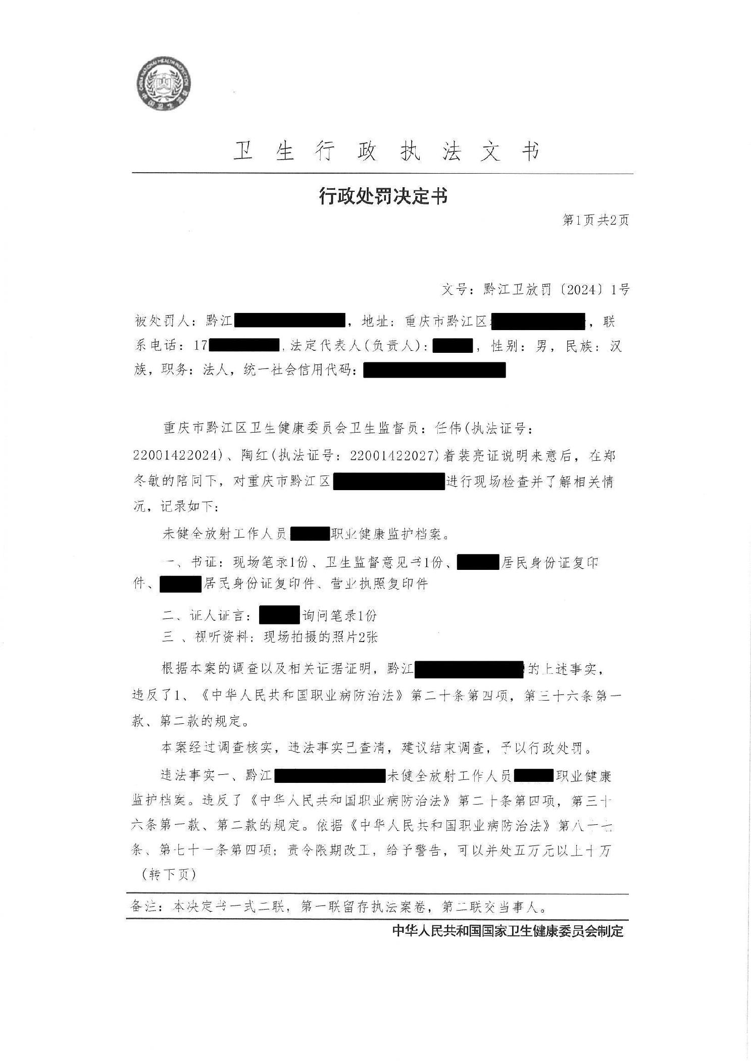 行政處罰決定書(黔江衛放罰〔2024〕1號)