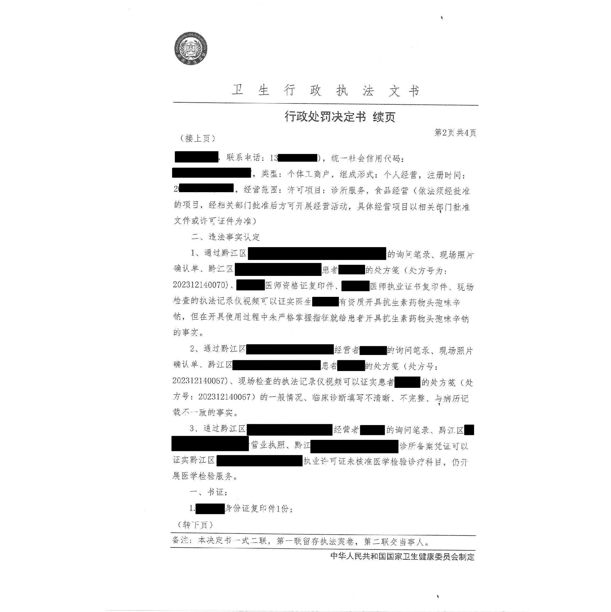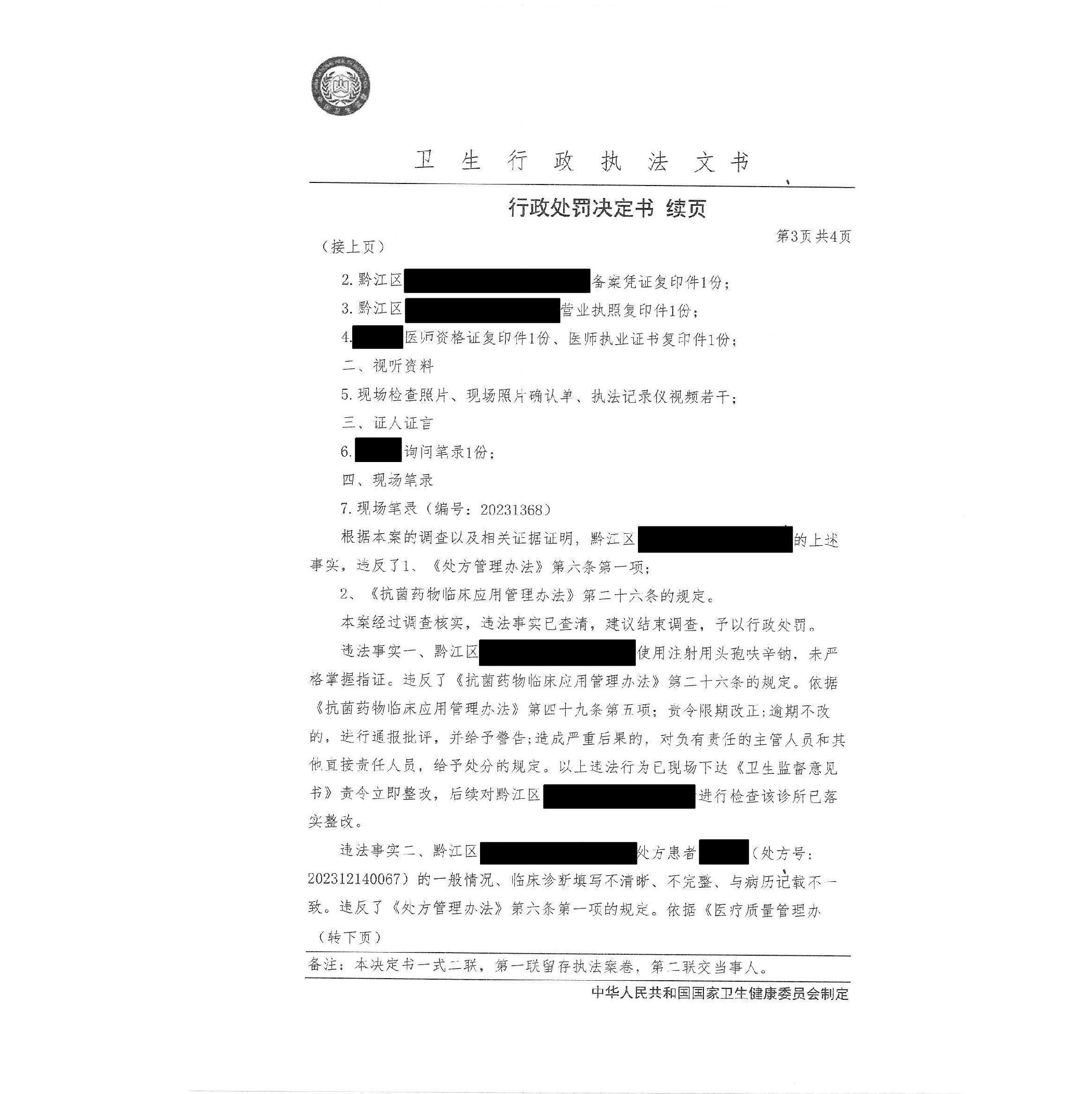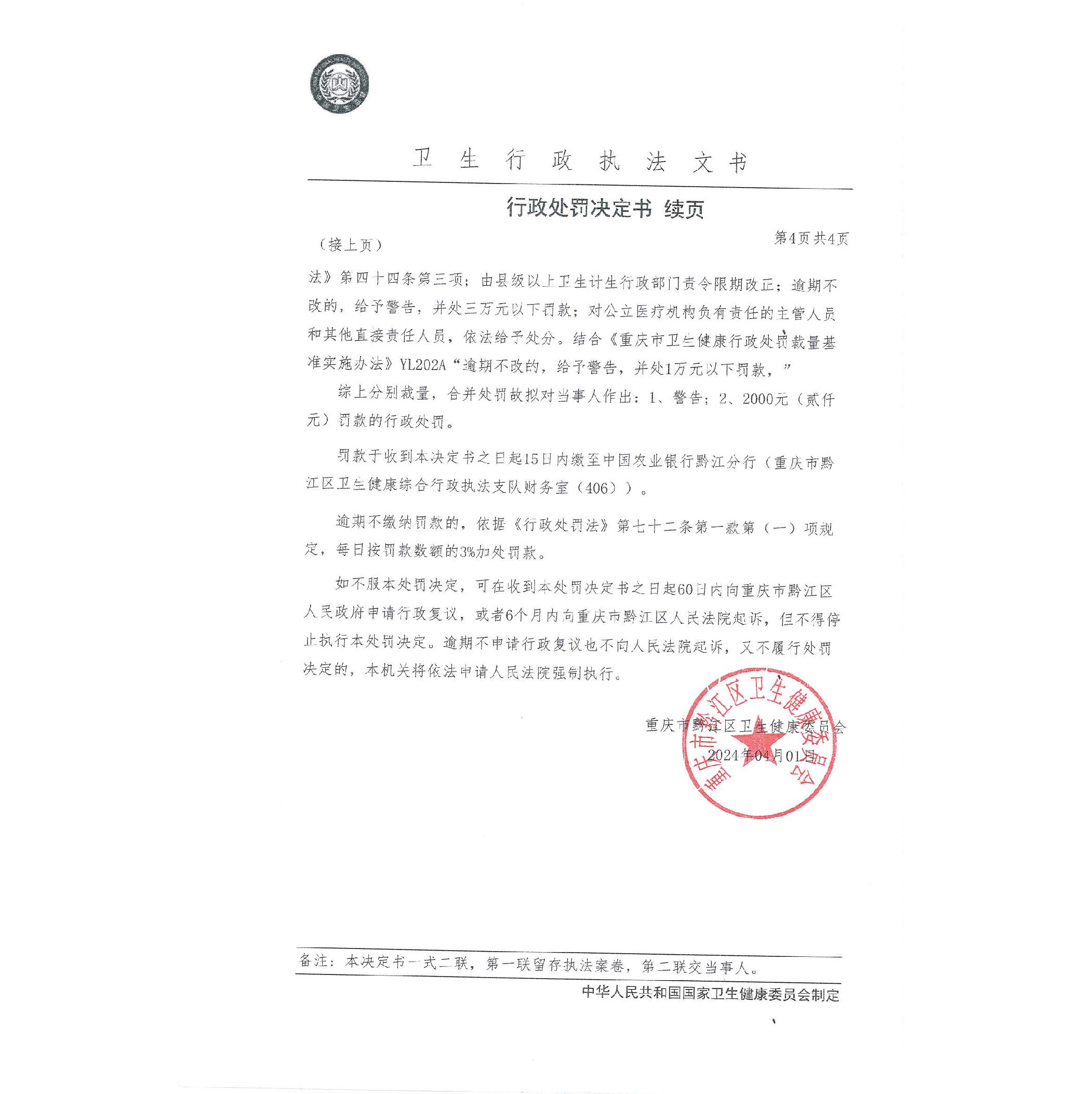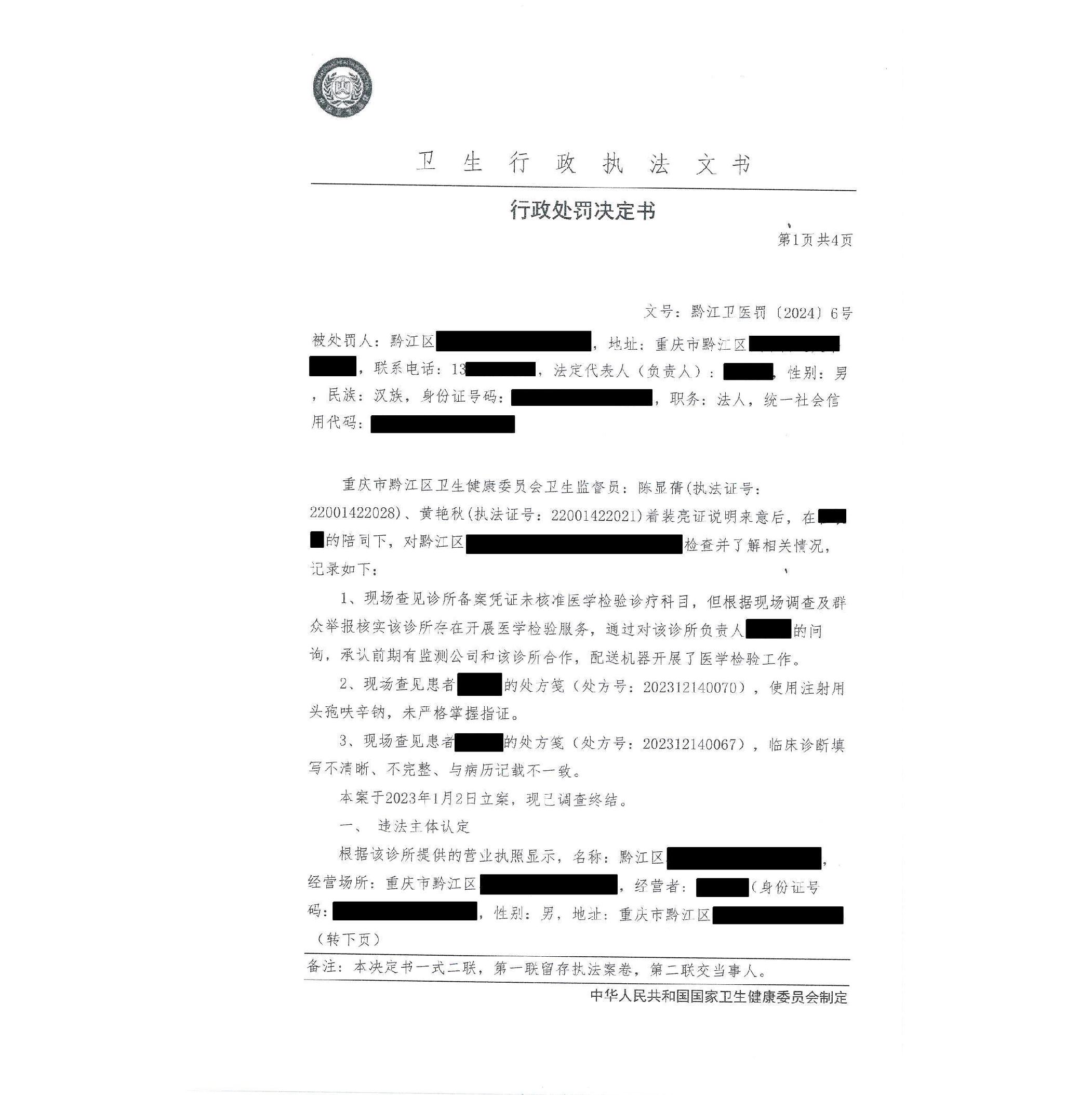 行政處罰決定書(黔江衛醫罰〔2024〕6號)