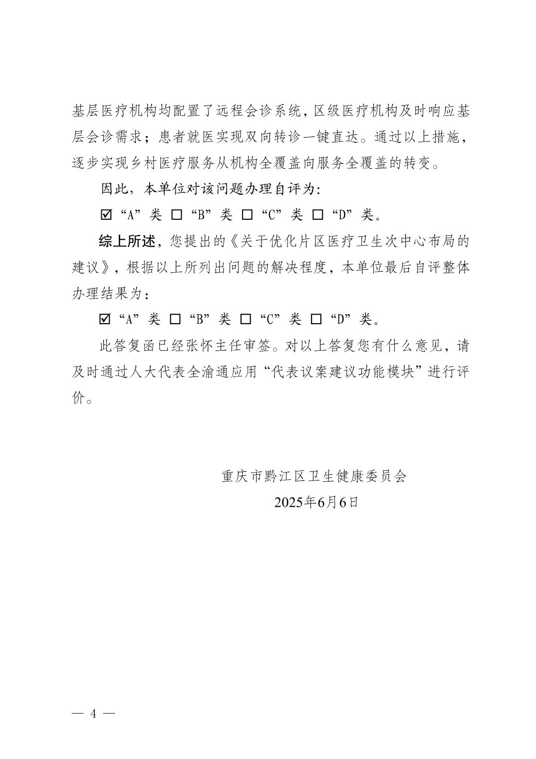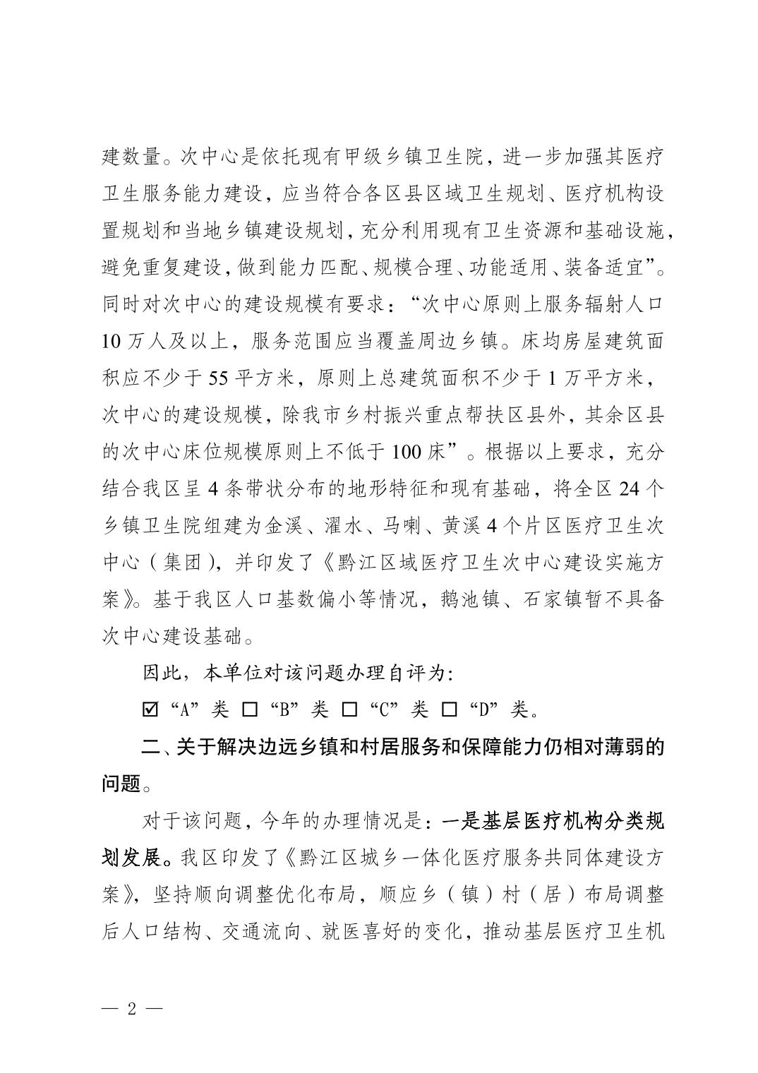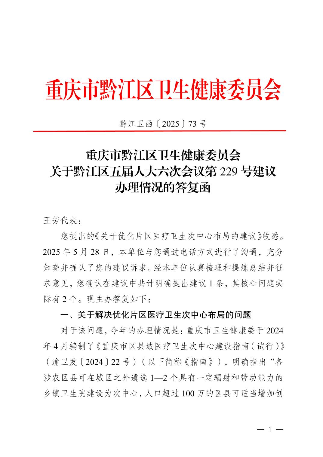 重慶市黔江區衛生健康委員會關于黔江區五屆人大六次會議第229號建議辦理情況的答復函