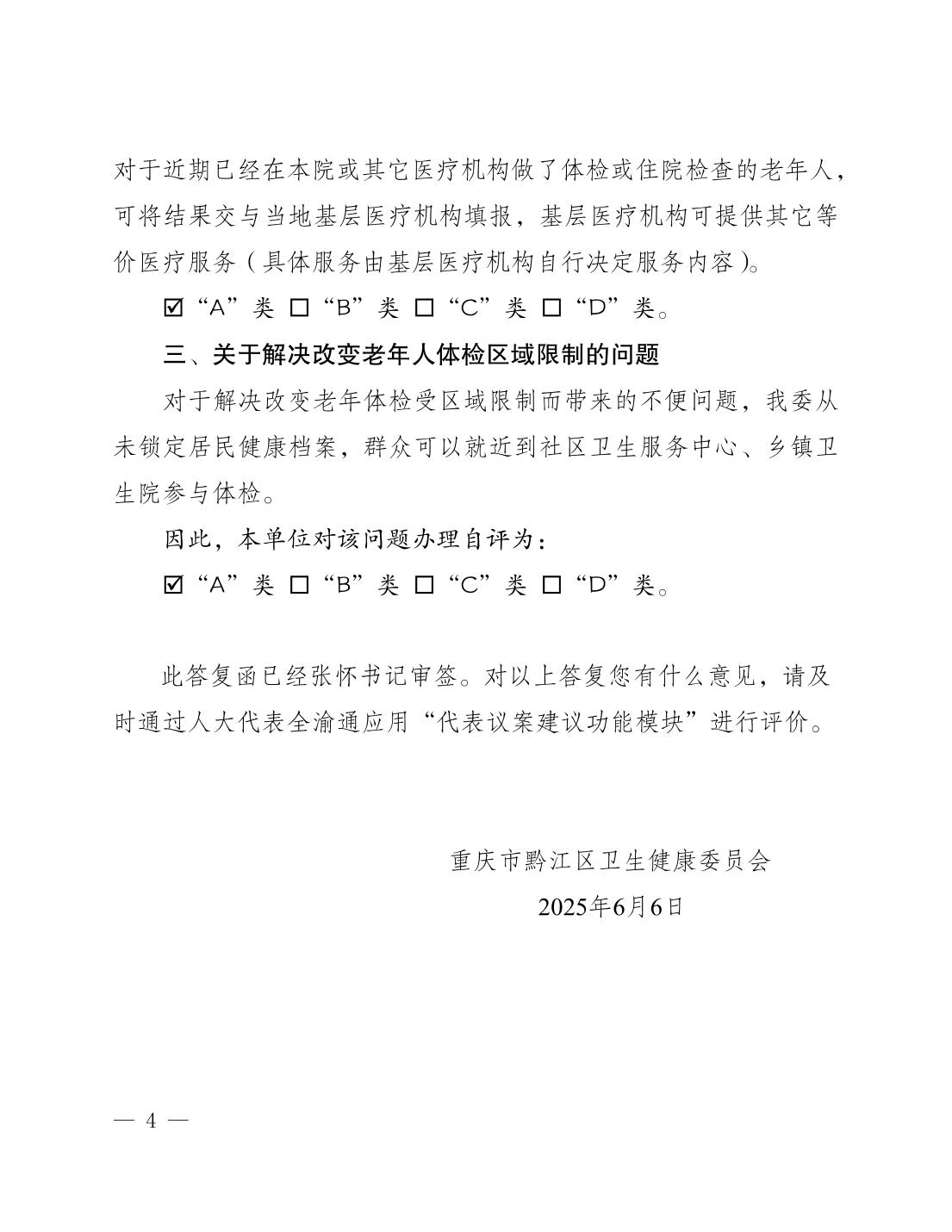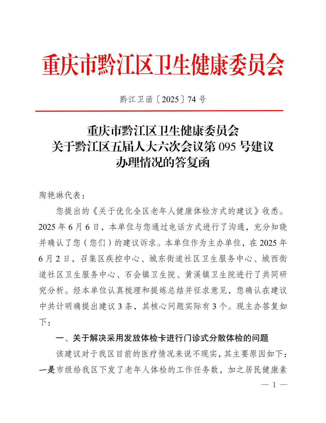 重慶市黔江區衛生健康委員會關于黔江區五屆人大六次會議第095號建議辦理情況的答復函
