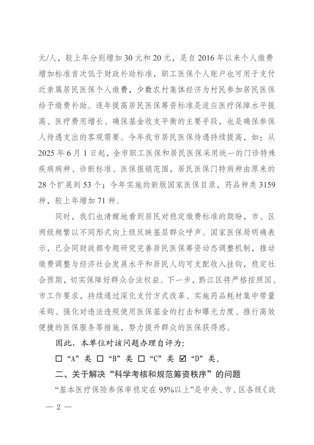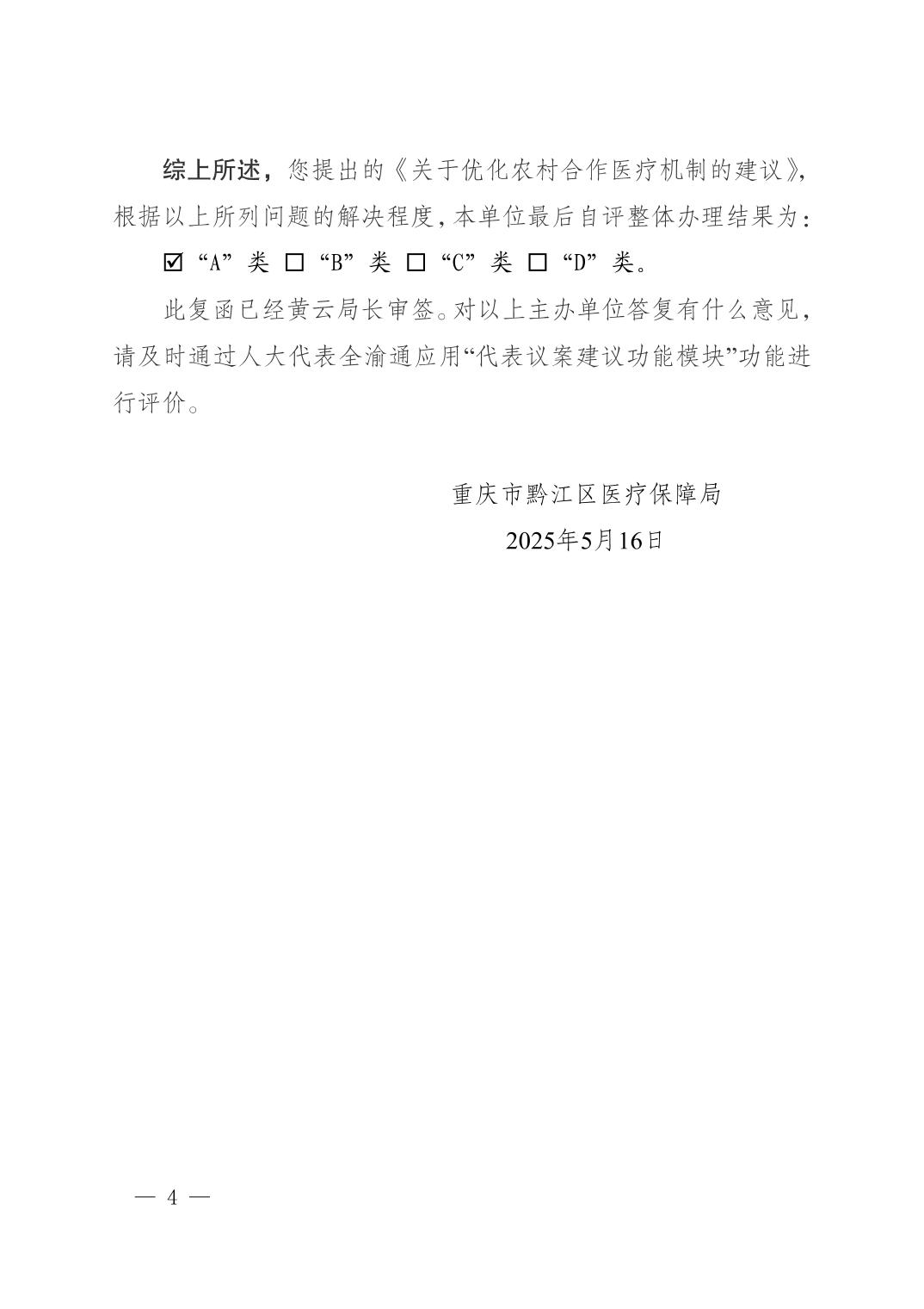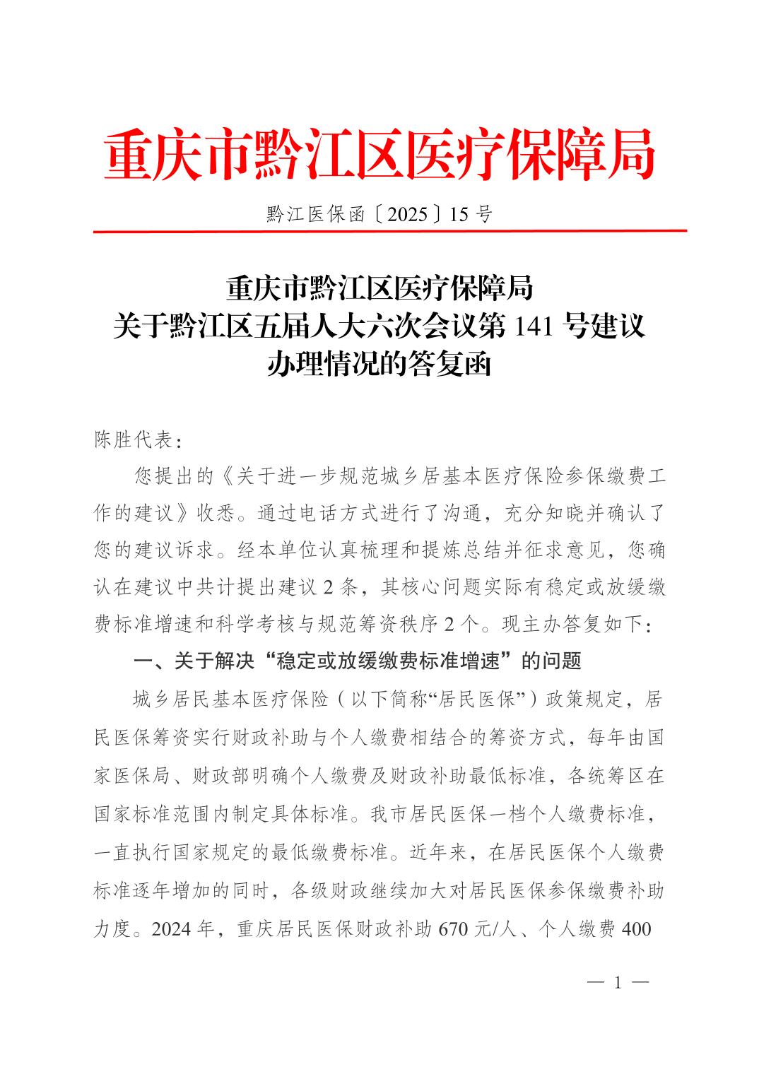 重慶市黔江區(qū)醫(yī)療保障局關(guān)于黔江區(qū)五屆人大六次會議第141號建議辦理情況的答復(fù)函
