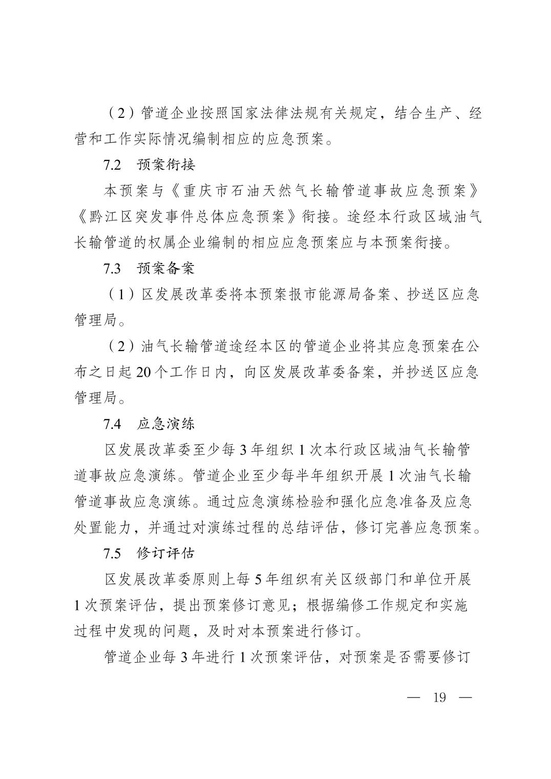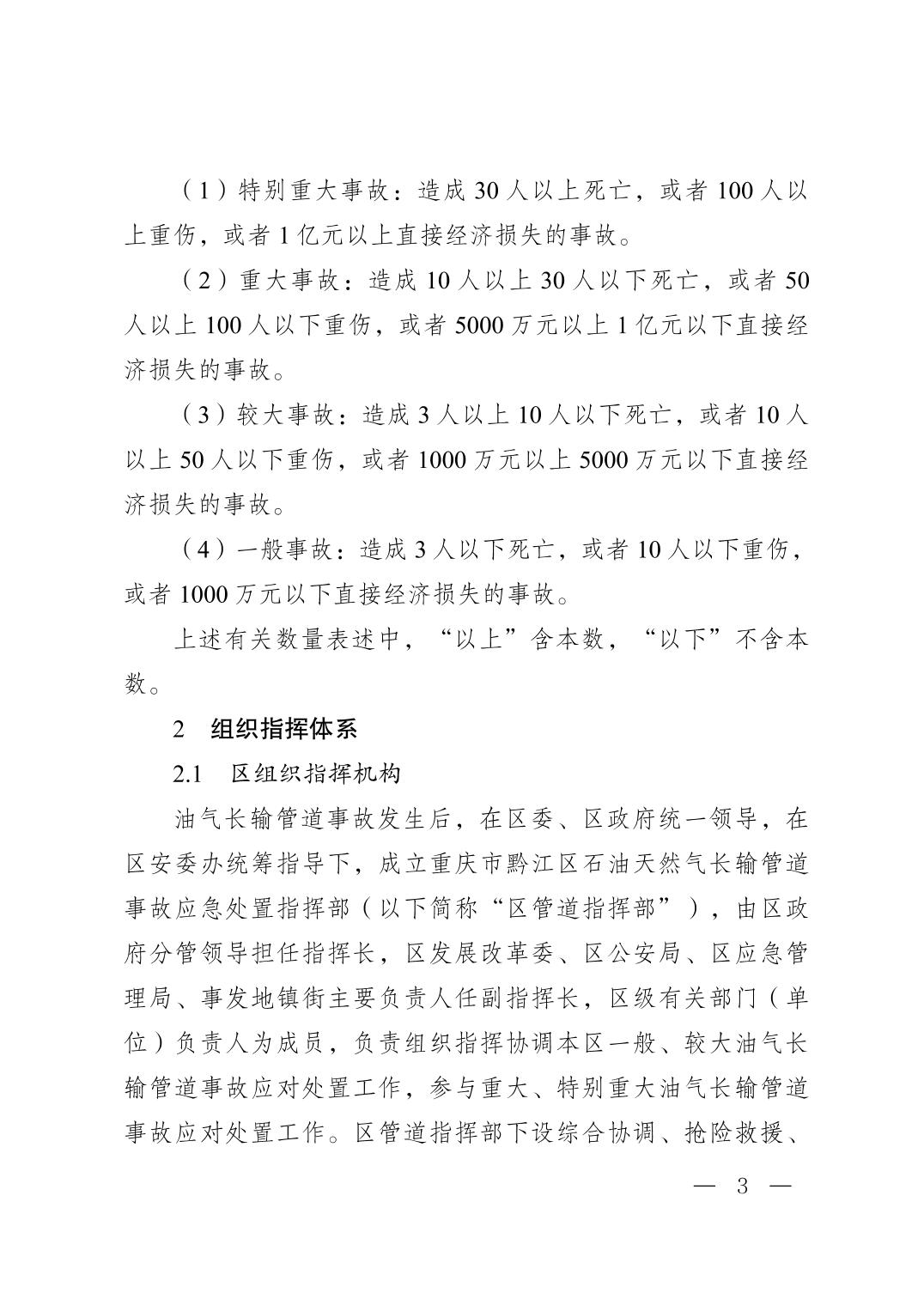 重慶市黔江區(qū)人民政府辦公室關(guān)于印發(fā)黔江區(qū)石油天然氣長(zhǎng)輸管道事故