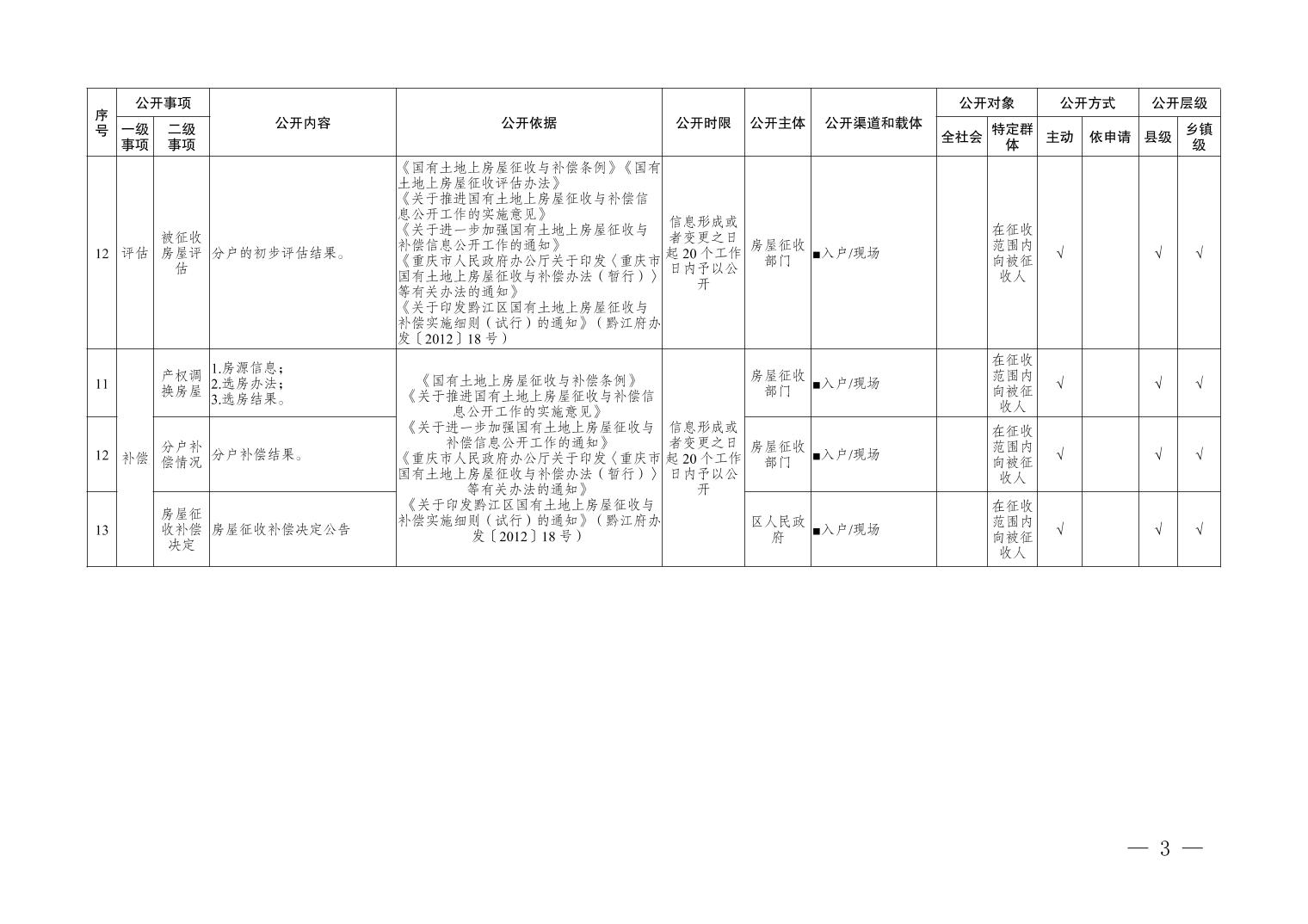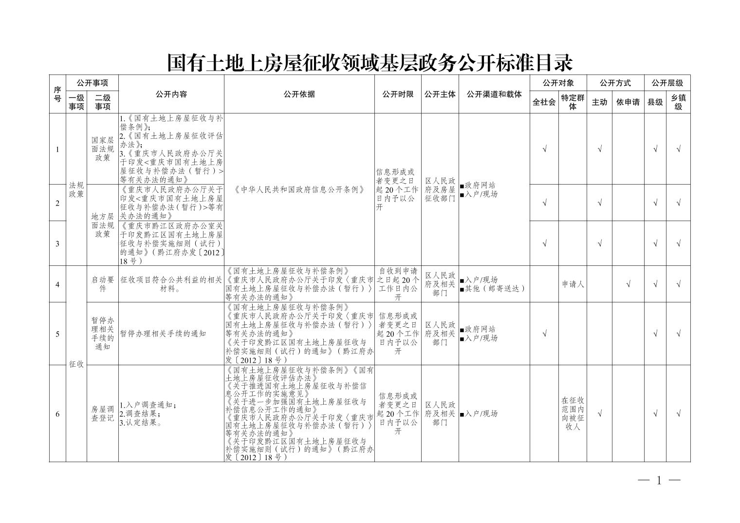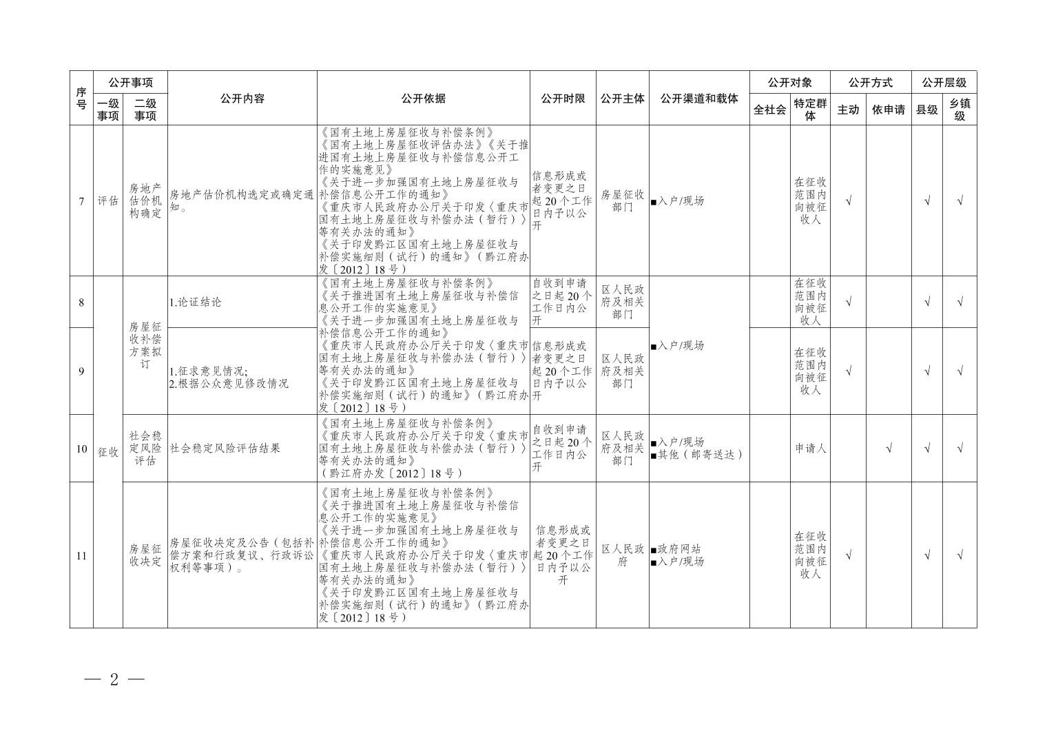 黔江區(qū)國(guó)有土地上房屋征收領(lǐng)域基層政務(wù)公開標(biāo)準(zhǔn)目錄(2023年修訂)