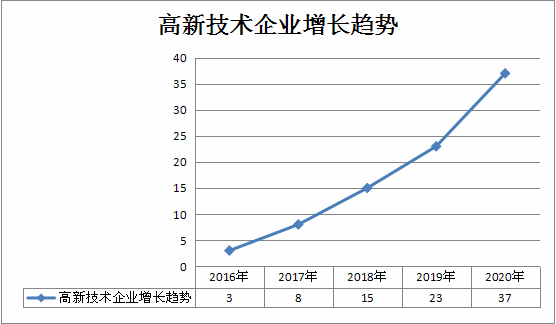 創新主體加速集聚。累計培育科技型企業350家,位居渝東南首位;高新技術企業達到37家(見附圖1),占渝東南總量的56.1%;建成2家院士專家工作站,5家市級企業技術中心,全區專業研發機構達到33家,累計開發高新技術產品52個,重大新產品4個。