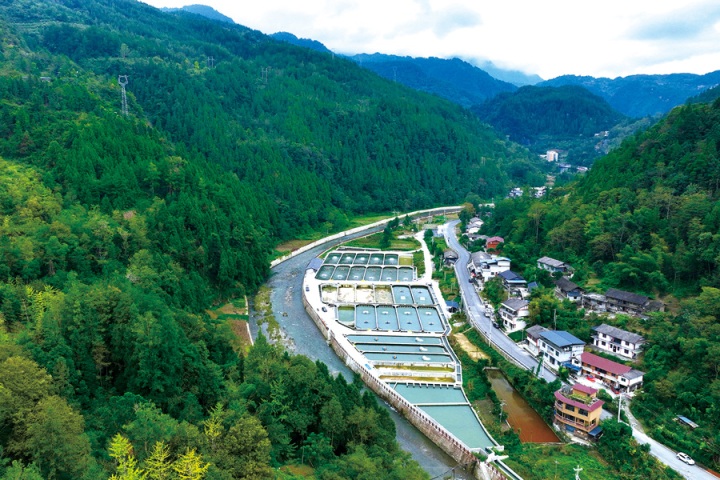9月22日,治理后的馬喇河環繞著黔江區金洞鄉魚泉村的鱘魚養殖基地和民居。近年來,黔江區加大中小河流治理力度,同時完善岸坡綠化、新增沿河步道、親水平臺等親水便民設施,改善居住環境,并在河道兩岸發展蠶桑、油菜、柑橘、生態水產、綠色水稻等產業,助推農民增收致富和鄉村振興。