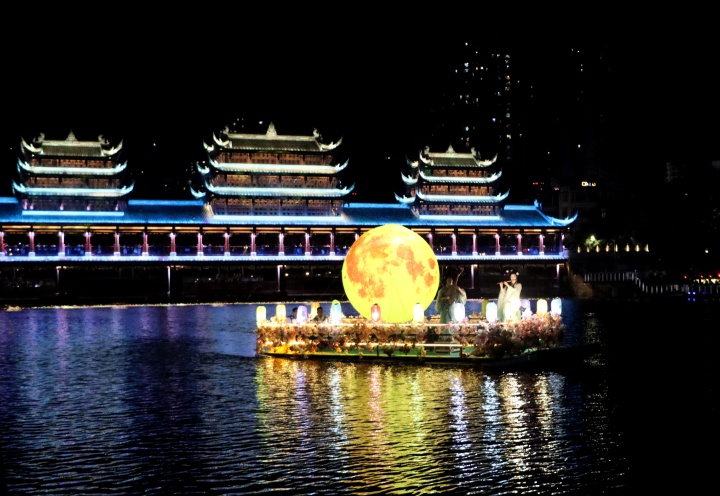 雙節(jié)期間,武陵水岸歌舞升平,美學市集熱鬧甚歡。持續(xù)推出的歌舞表演、水上飛人、秋月共賞、民俗體驗、品鑒美食、購物娛樂等“慶國慶、過中秋”活動,讓當?shù)厥忻窈陀慰驮跉g聲笑語中感受節(jié)日的濃厚氛圍與家國情懷。(記者 李詩素 文/圖)